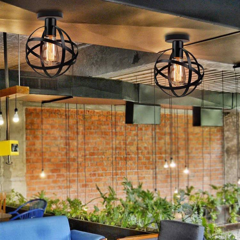 Herbert Plafonnier Globe Vintage, Métal, Noir, Balcon