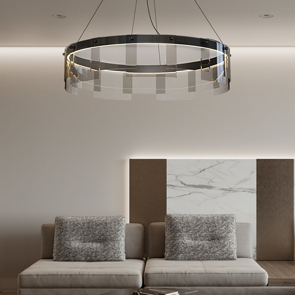 Evette Suspension Anneau Moderne, Métal/Verre, Noir, Chambre à Coucher/Salon